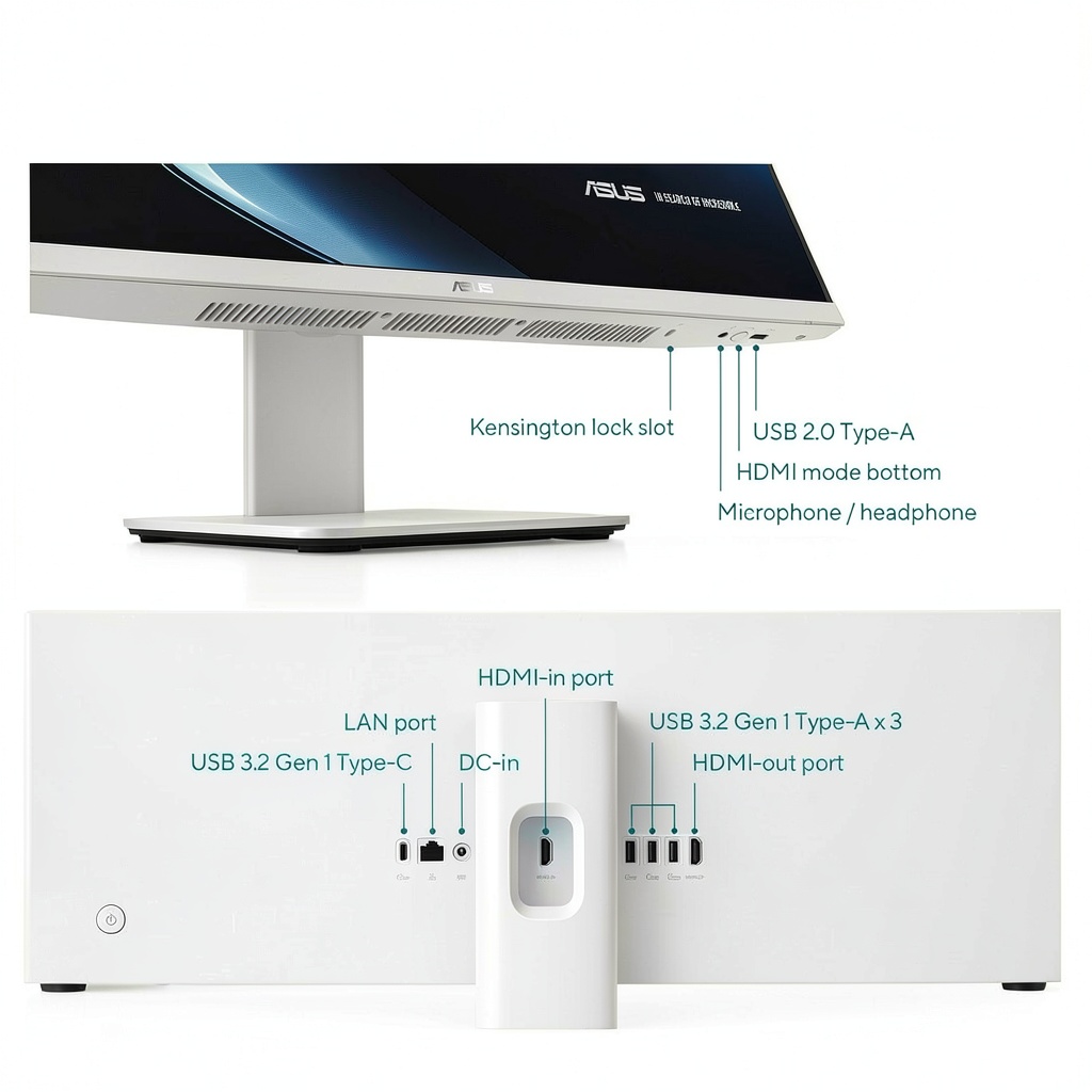 ASUS delivers a competitive edge with this all-in-one PC through its integration of advanced AI technology, ensuring faster task execution and improved productivity without compromising on security. The build quality includes robust materials like the IPS panel for wide viewing angles and durable components, backed by features such as Microsoft Pluton security and Kensington lock support for data protection. Unlike generic alternatives, it offers unique versatility with HDMI-in functionality, allowing seamless switching between PC and external device use, all while maintaining a sleek, eco-conscious design that reduces environmental impact.