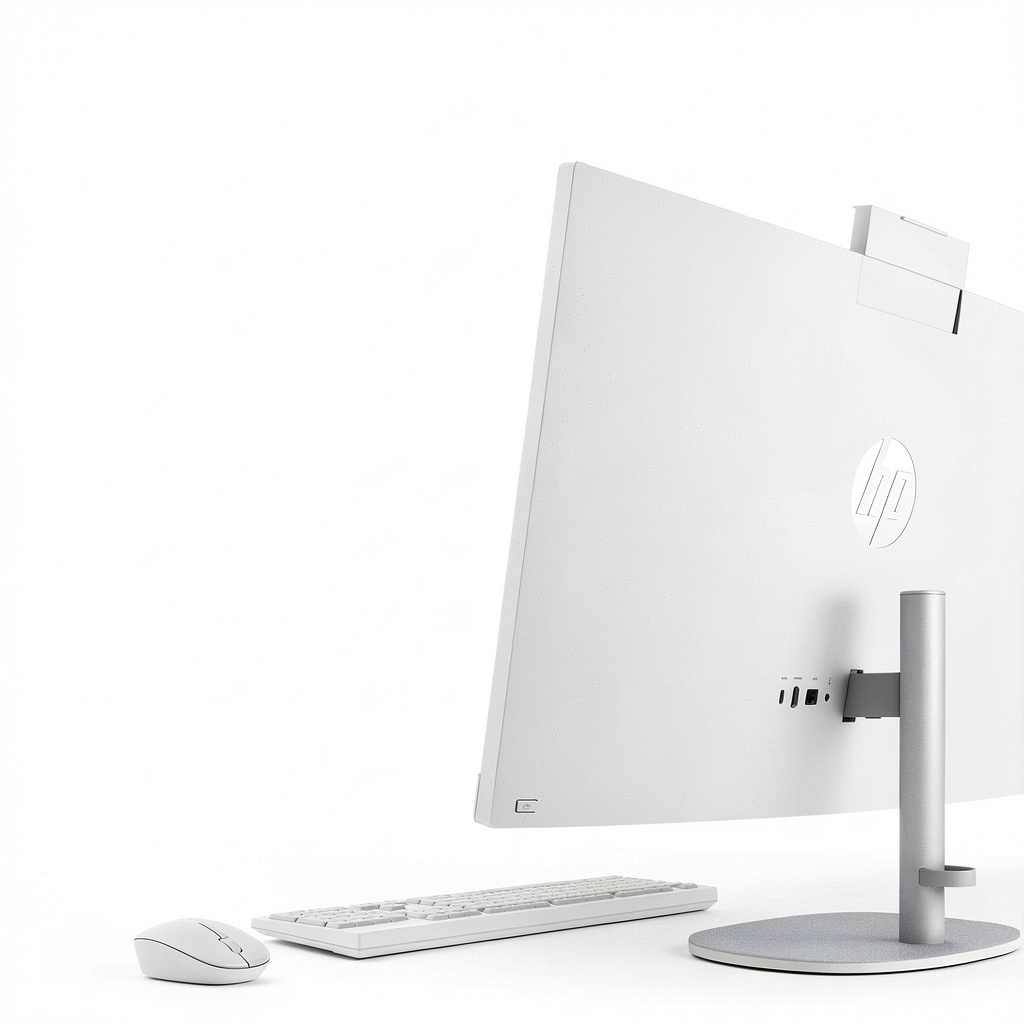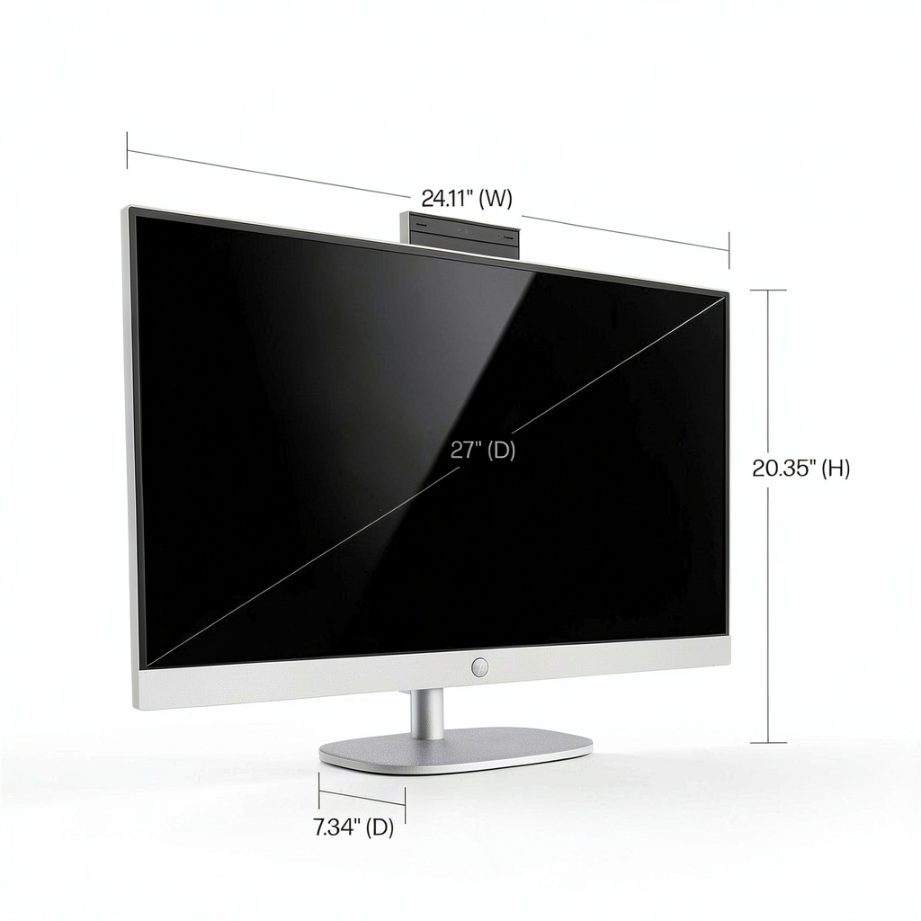 The HP 27 All-in-One PC is designed for modern computing needs, featuring a 27-inch Full HD IPS touch screen with anti-glare technology and a three-sided micro-edge display for expansive viewing. Powered by an Intel Core Ultra 7 processor and 16GB DDR5 RAM, it delivers fast, efficient performance for multitasking, creative projects, and gaming. Storage is handled by a 1TB PCIe NVMe SSD, offering up to 15 times faster data access than traditional hard drives. Integrated Intel graphics support high-resolution content creation and entertainment, while Windows 11 provides a refreshed interface for natural interaction. The unit includes a wired keyboard, mouse, power cord, and user manual, all in a sleek Shell White finish.