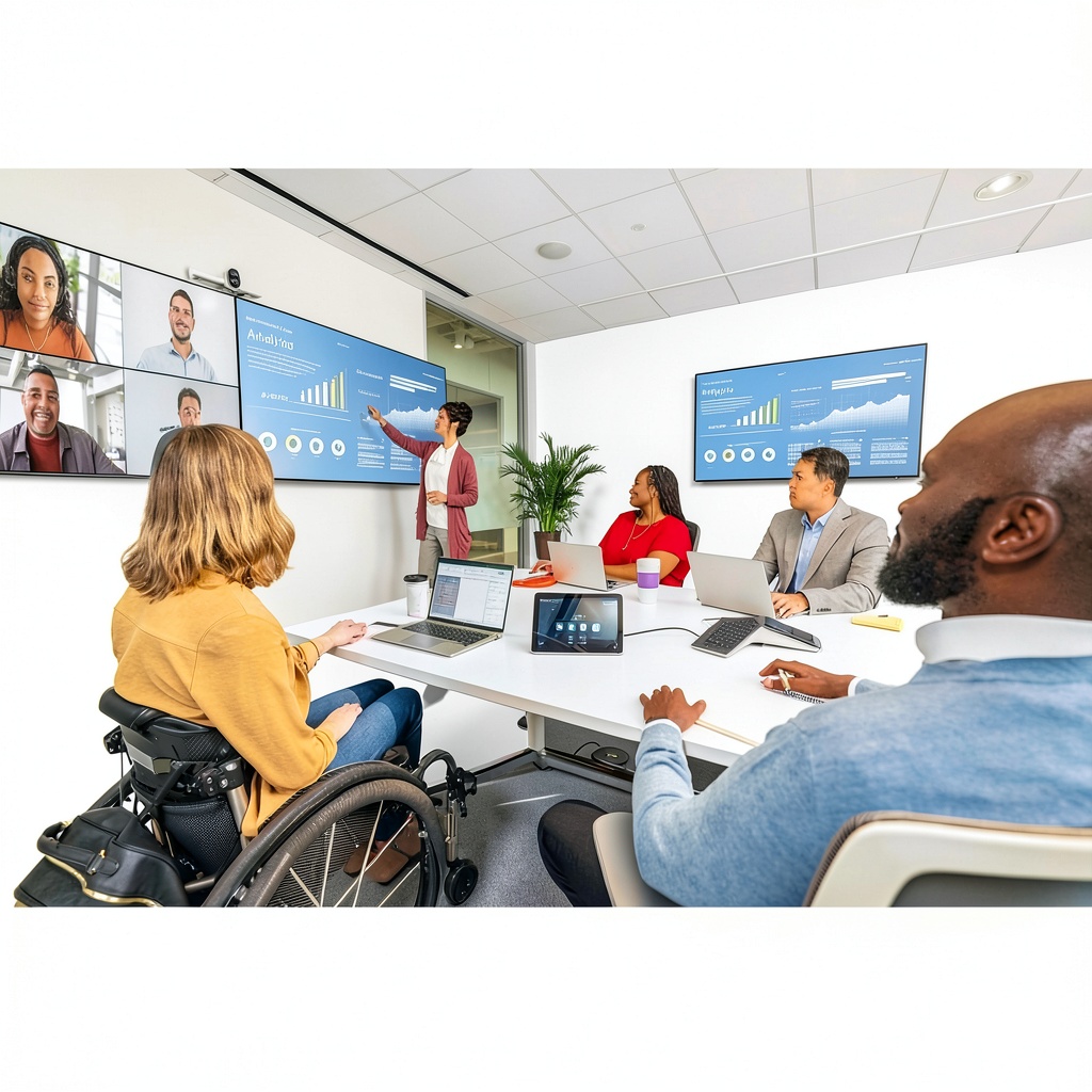 Absolutely, it is built for hybrid settings, with dual cameras and AI analytics to create equitable experiences for both in-room and remote attendees.